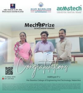 - Adithiyan P J of S8 ME won the MechPrize scholarship from Armstech Engineers pvt ltd for MEP training from Mr Aravinth B Training Head Armstech Engineers Pvt Ltd on February 24, 2026. The session was coordinated by Dr Nidhi MB, Head CPDL.